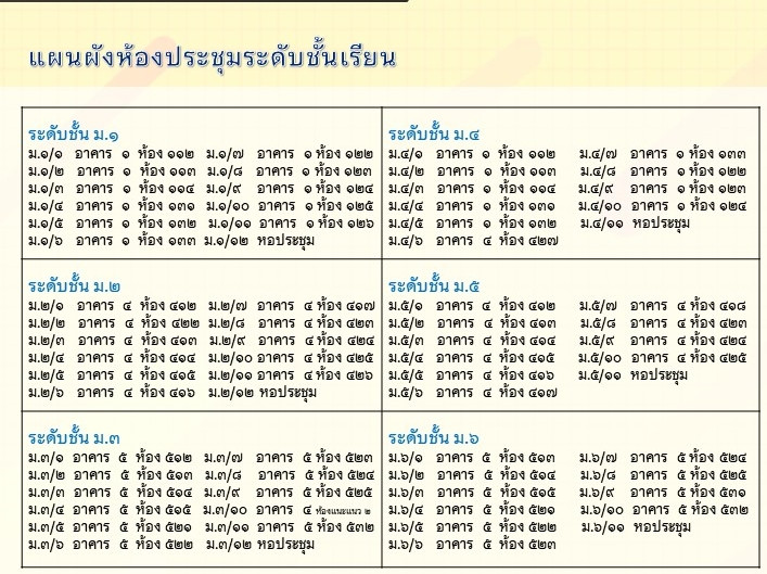 12.30 - 13.30 น. ลงทะเบียนหน้าห้องโฮมรูม