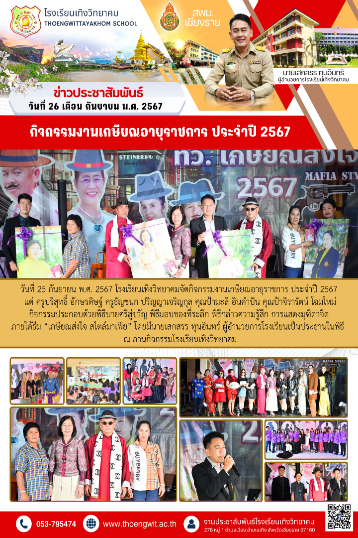 กิจกรรมงานเกษียณอายุราชการ ประจำปี 2567 นางสาวจิราวรรณ เรือนสิทธิ์ 26 กันยายน 2567 กลุ่มบริหารงานอำนวยการ เข้าชม : 474
