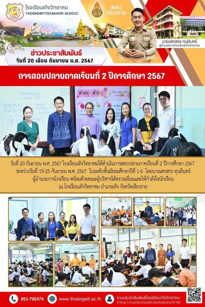 การสอบปลายภาคเรียนที่ 2 ปีการศึกษา 2567 นางสาวจิราวรรณ เรือนสิทธิ์ 20 กันยายน 2567 กลุ่มบริหารงานวิชาการ เข้าชม : 522