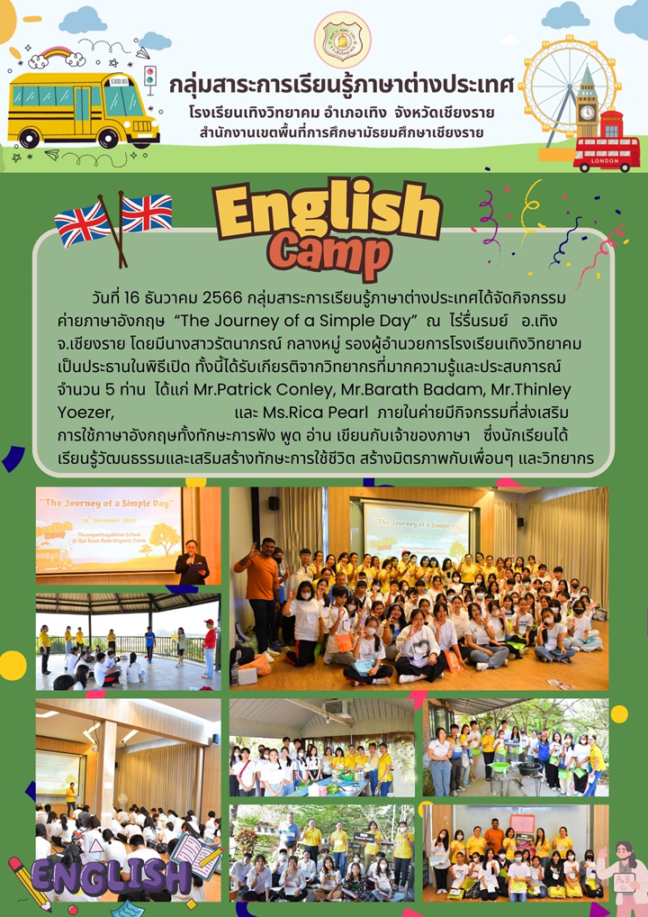 English Camp นายโยธิน ศิริเอ้ย 18 ธันวาคม 2566 กลุ่มบริหารงานวิชาการ เข้าชม : 663