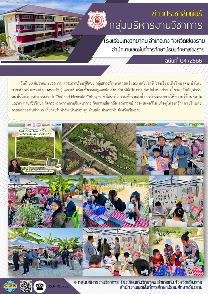 ศิลปะในนาข้าว เกี้ยวตะวันธัญฟาร์ม Thailand biennale Chiangrai นายโยธิน ศิริเอ้ย 2 มกราคม 2567 กลุ่มบริหารงานวิชาการ เข้าชม : 673