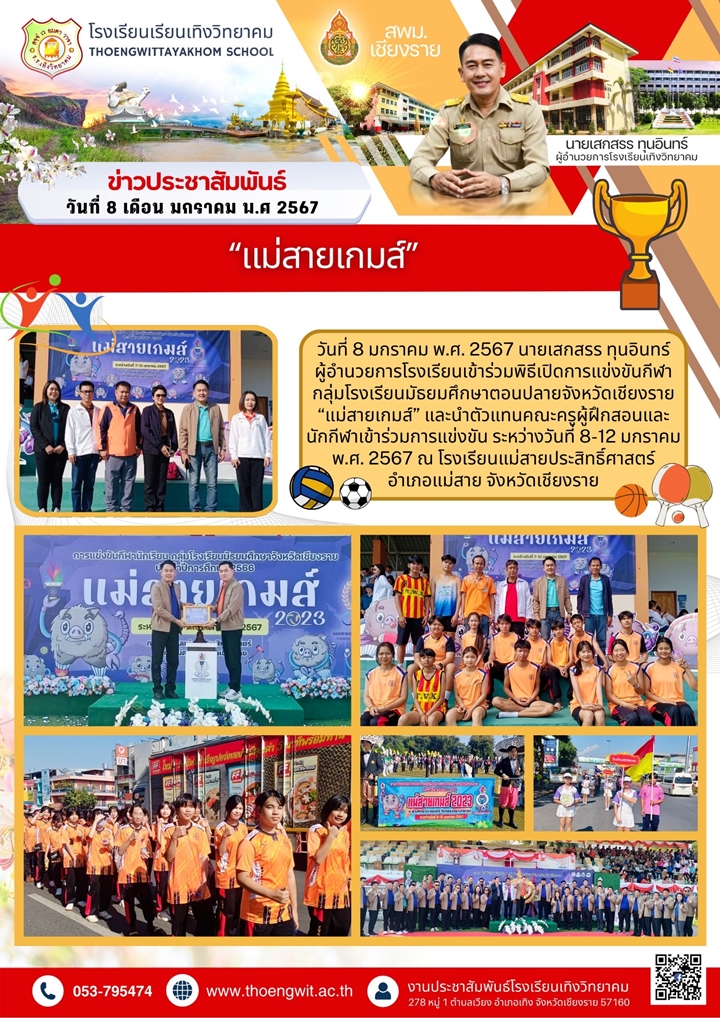 แม่สายเกมส์ นายโยธิน ศิริเอ้ย 9 มกราคม 2567 กลุ่มบริหารงานกิจการนักเรียน เข้าชม : 771