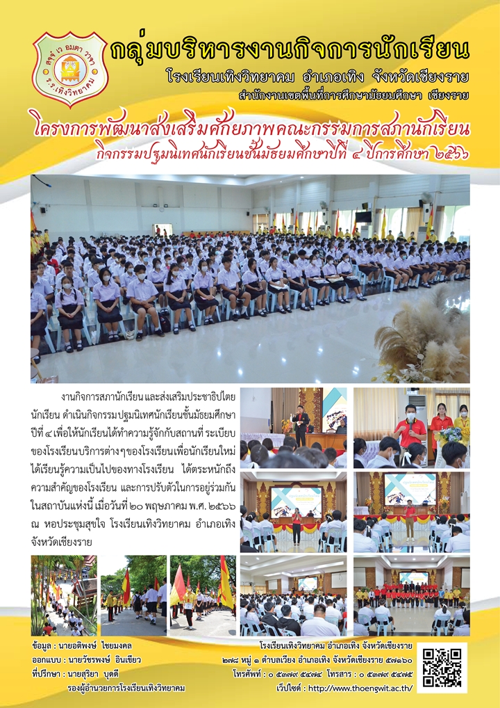 ปฐมนิเทศนักเรียนชั้นมัธยมศึกษาปีที่ 4 ปีการศึกษา 2566 นายโยธิน ศิริเอ้ย 26 กรกฎาคม 2566 กลุ่มบริหารงานกิจการนักเรียน เข้าชม : 743