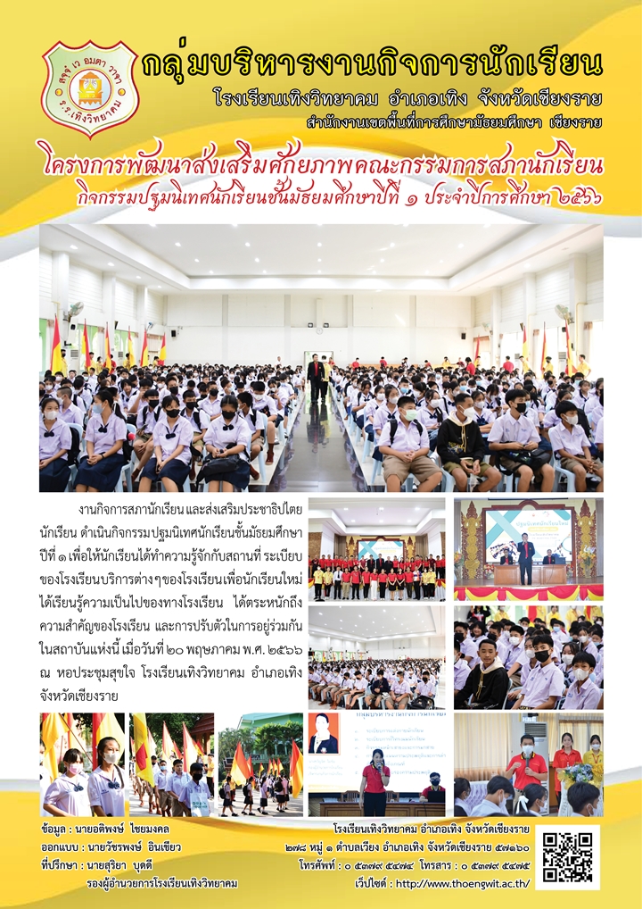 ปฐมนิเทศนักเรียนชั้นมัธยมศึกษาปีที่ 1 ปีการศึกษา 2566 นายโยธิน ศิริเอ้ย 26 กรกฎาคม 2566 กลุ่มบริหารงานกิจการนักเรียน เข้าชม : 627