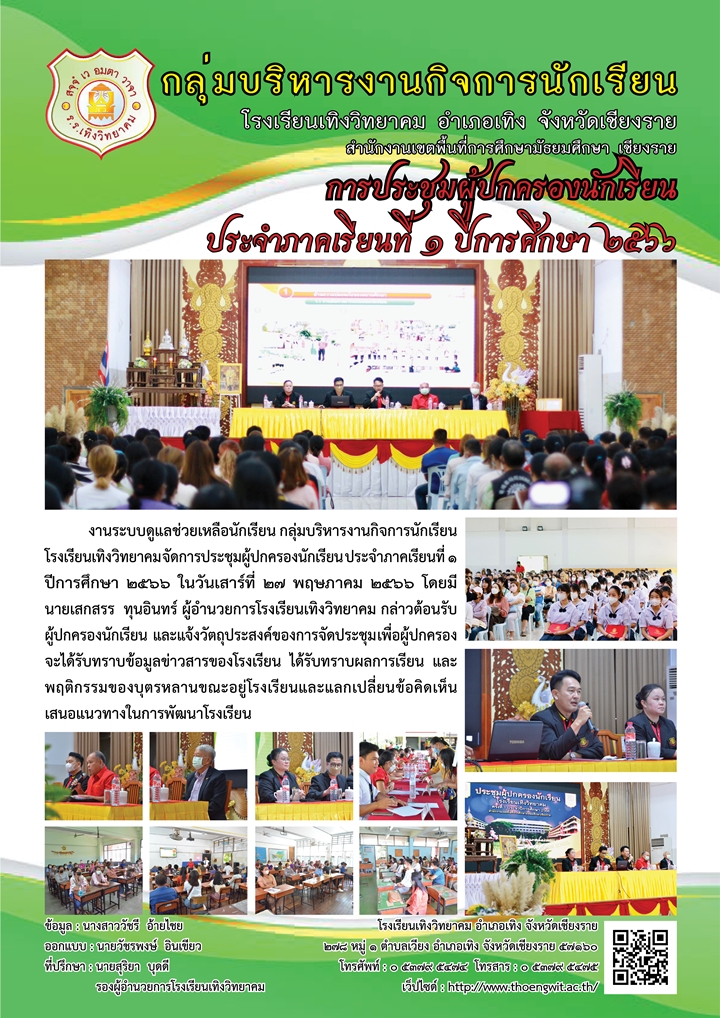 ประชุมผู้ปกครองนักเรียน ภาคเรียนที่ 1 ปีการศึกษา 2566 นายโยธิน ศิริเอ้ย 26 กรกฎาคม 2566 กลุ่มบริหารงานกิจการนักเรียน เข้าชม : 623