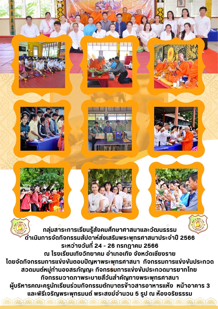 กิจกรรมสัปดาห์ส่งเสริมพระพุทธศาสนา ประจำปี 2566 นายโยธิน ศิริเอ้ย 27 กรกฎาคม 2566 กลุ่มบริหารงานวิชาการ เข้าชม : 641